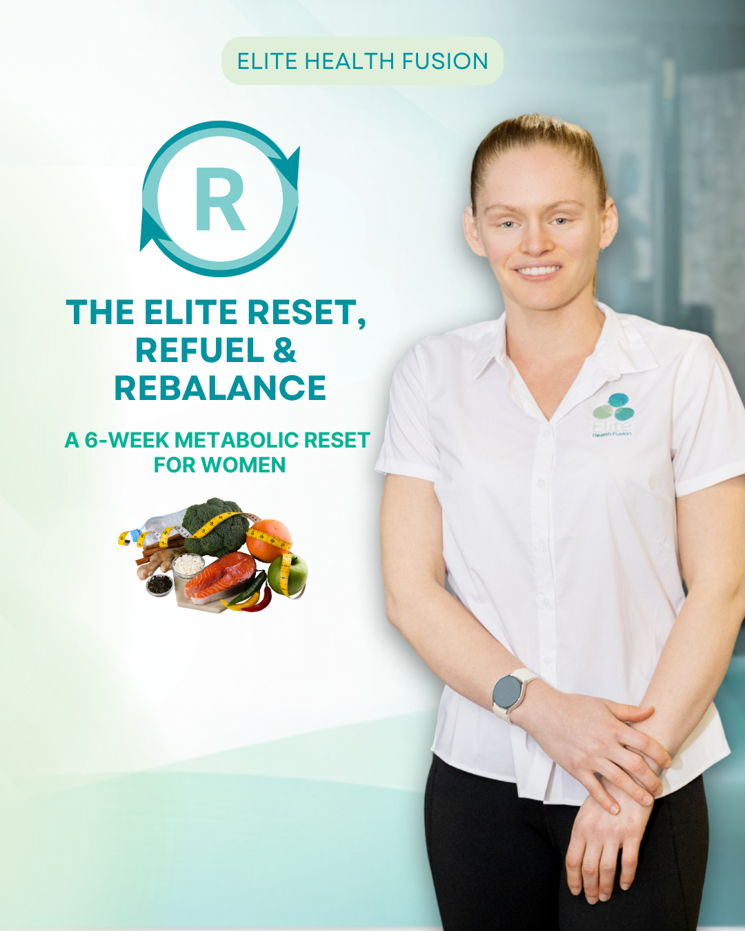 The Elite Reset, Refuel & Rebalance is a 6-week program for women who want sustainable fat loss without extremes or burnout.